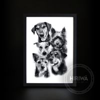 "My sisters and I purchased a print of our mums 5 dogs for her birthday. Hiriwā had never put so many dogs together in one piece, all from different photos. It is amazing! We all love it and so thankful to be able to give my mum such a special gift. Communication was awesome and prompt. Highly recommend. Thanks again 😊"
